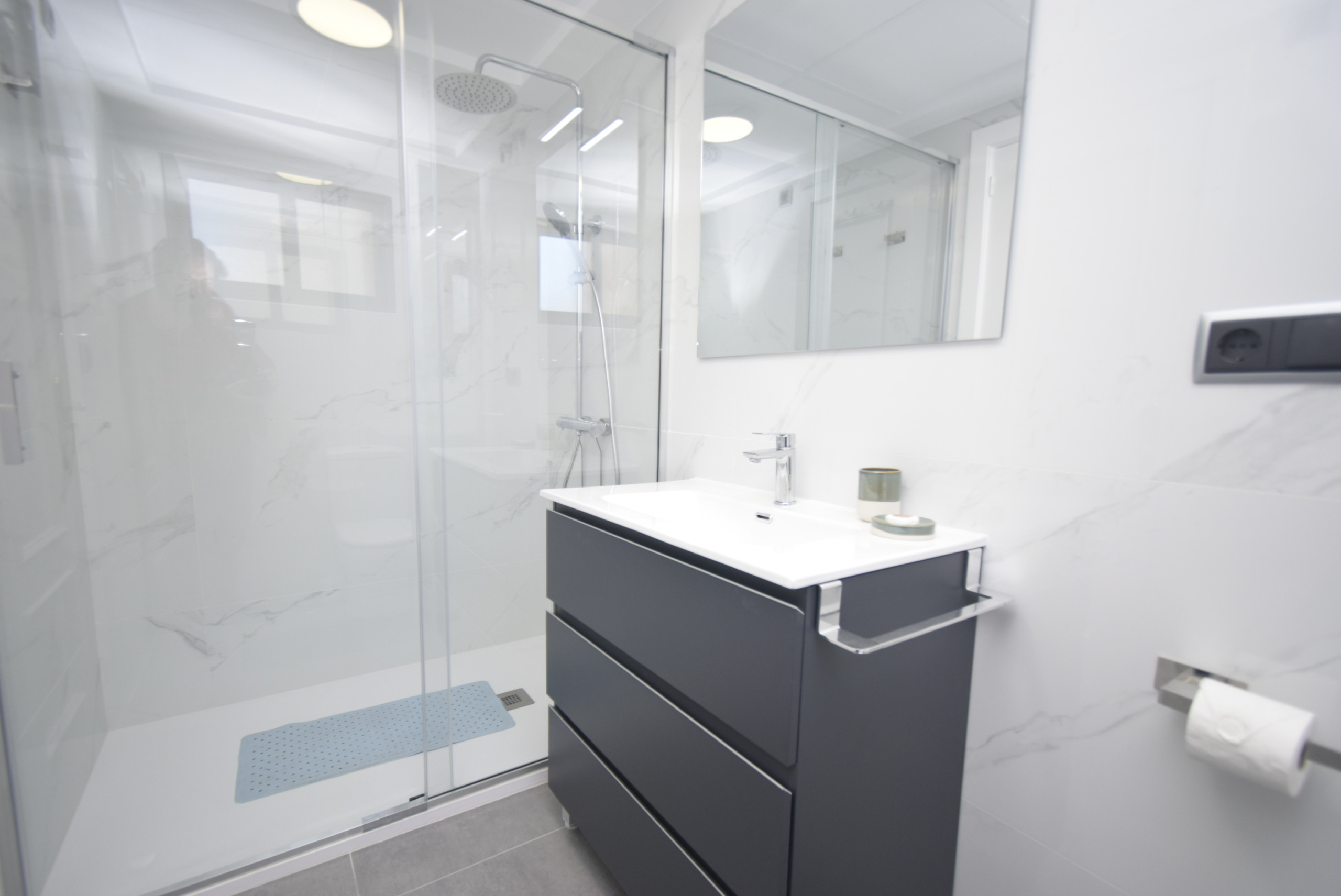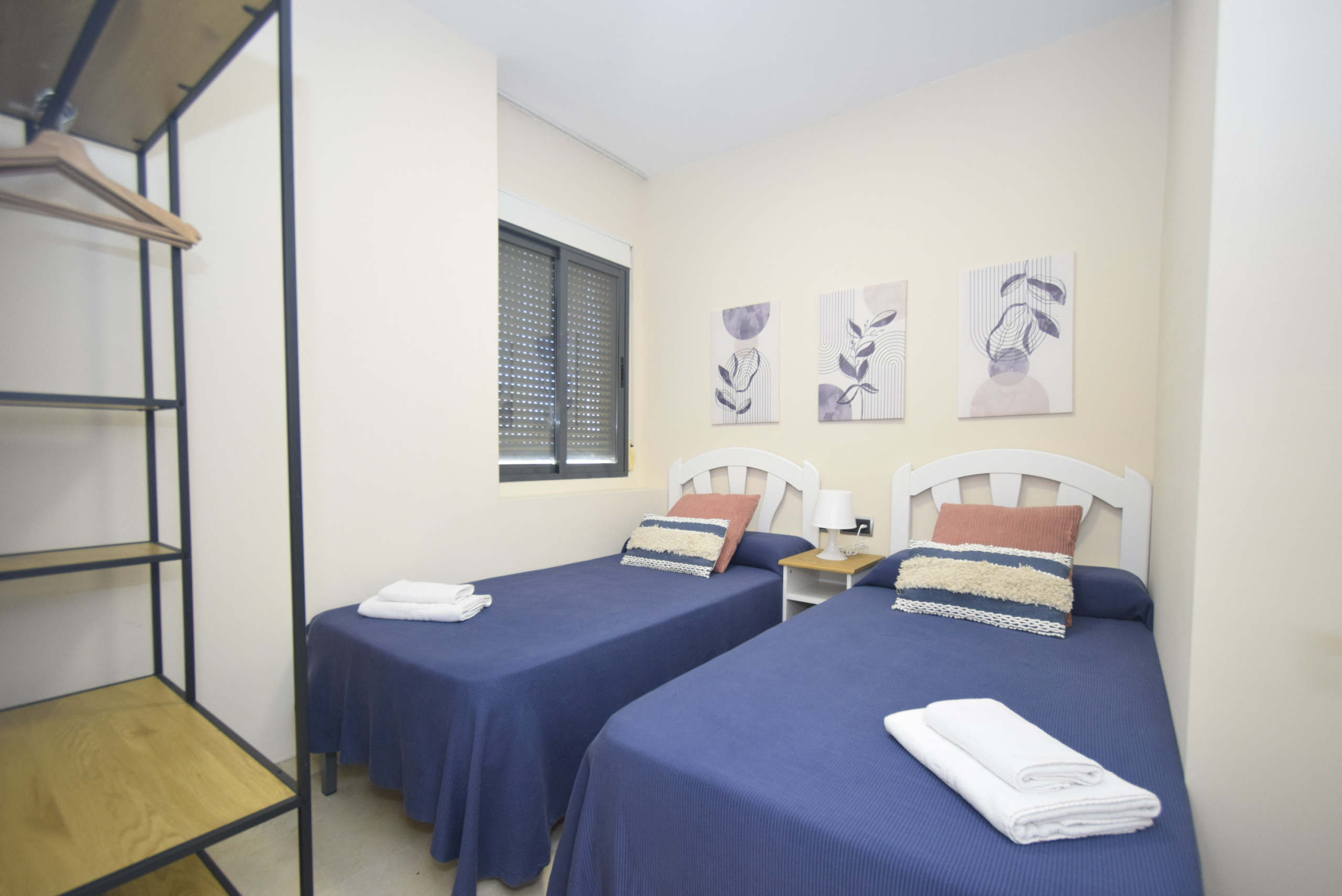 El apartamento cuenta con dos baños, uno con ducha y otro con bañera, proporcionando comodidad y privacidad para todos los huéspedes. La habitación principal incluye dos camas individuales, mientras que el segundo dormitorio cuenta con otras dos camas individuales, ideal para familias con niños o grupos de amigos.