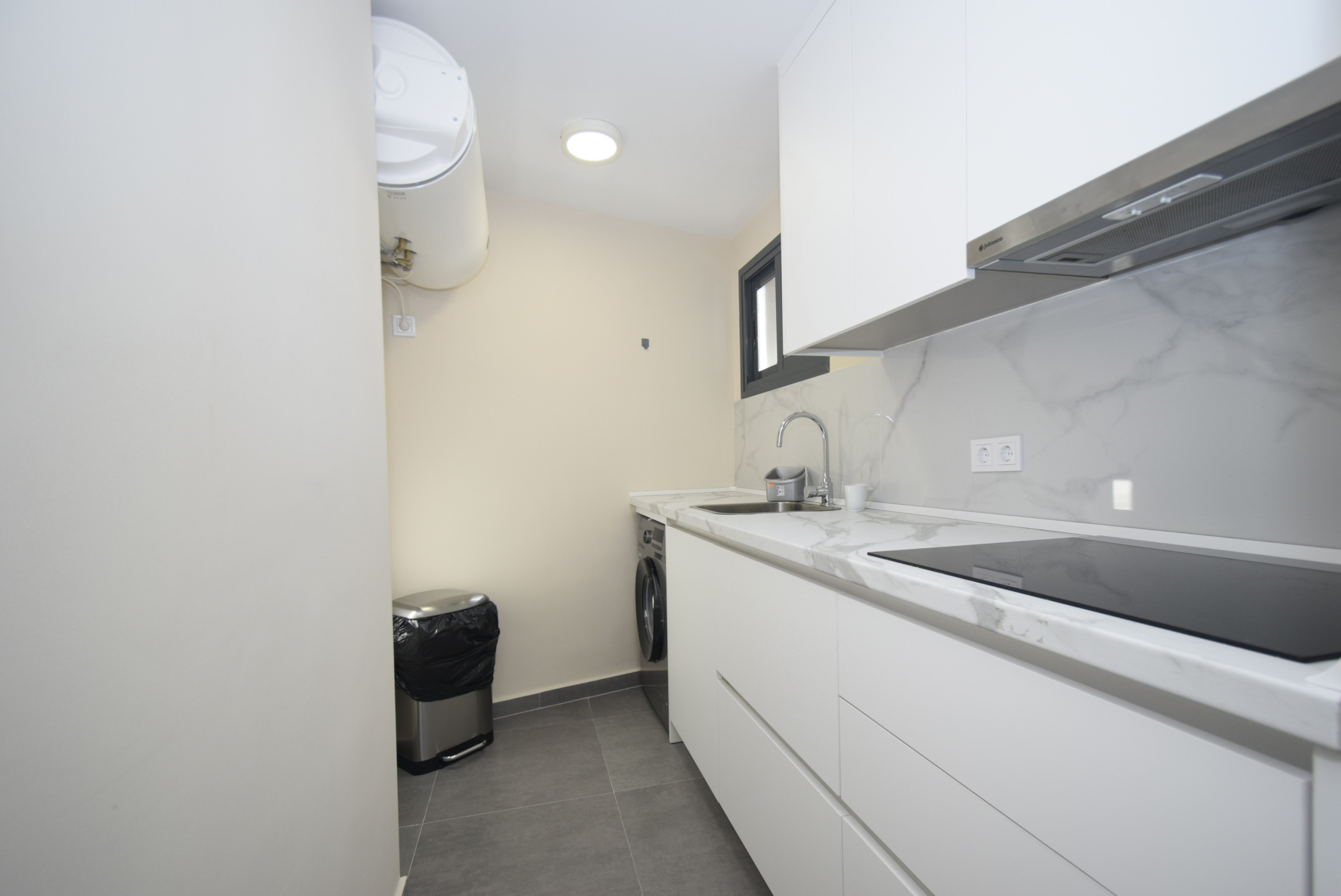 La cocina totalmente equipada es un punto destacado, con placas vitrocerámicas, frigorífico, congelador, lavadora, y una amplia variedad de electrodomésticos como cafetera, tostadora, hervidor y exprimidor. Perfecta para preparar deliciosas comidas durante su estancia.