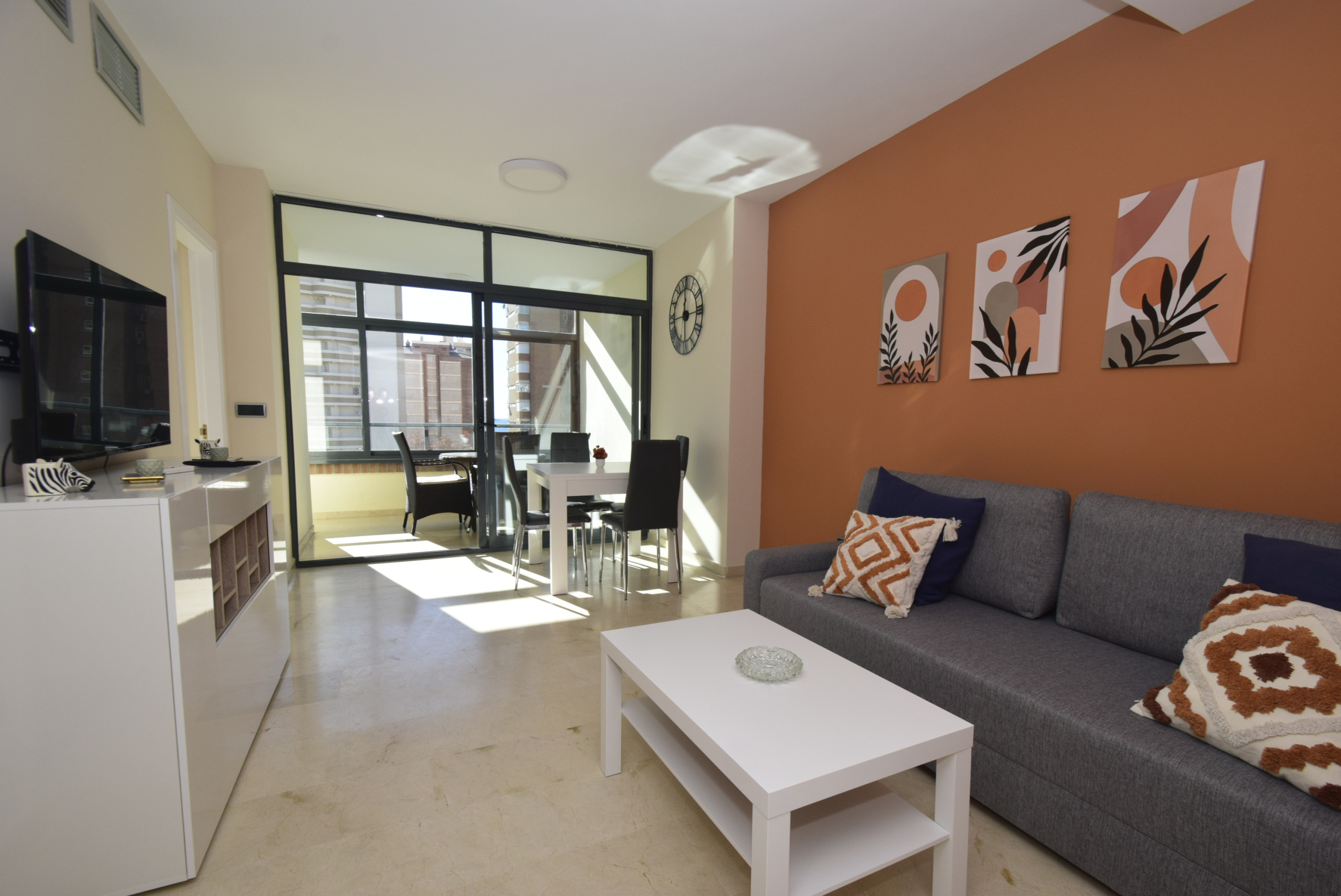 El apartamento en Benidorm posee 2 dormitorio y capacidad para 6 personas. Segundo dormitorio en terraza lateral acristalada (sofa cama)